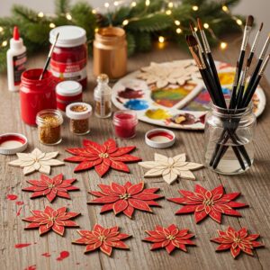 ✨ 7. Painted Wooden Poinsettias