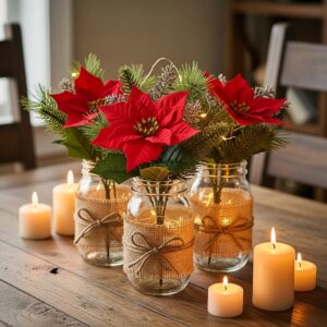 🌼 3. Poinsettia Mason Jar Centerpieces