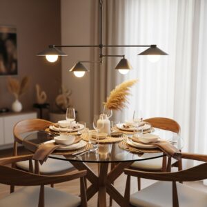 Warm bulbs or dimmable lighting help transform simple dinners into relaxing, romantic experiences.