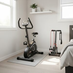 Even in a bedroom, a small corner can serve as a cardio area.