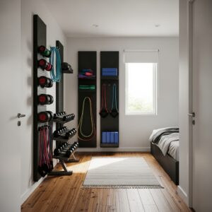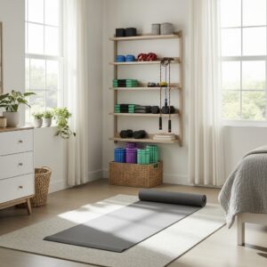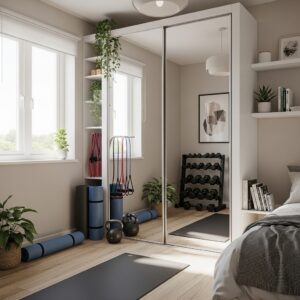 By using foldable equipment, vertical storage, mirrors, and compact free weights, you can create a functional workout space without cluttering the room.