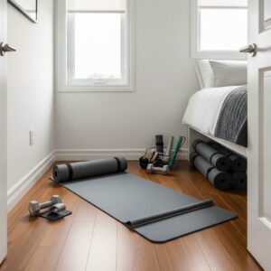 Foldable or roll-up mats are ideal for bedroom gyms.