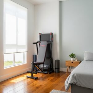 Foldable equipment like treadmills, exercise bikes, and weight benches is ideal for a bedroom gym.