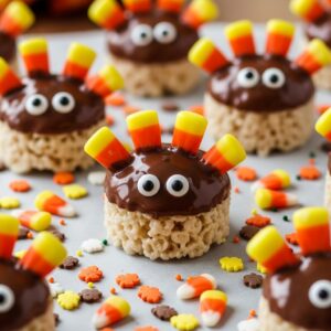 Chewy rice krispies shaped into turkeys — fun for kids to make!