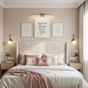 Choose romantic artwork, minimalist line drawings, floral prints, or typography with love-themed quotes.