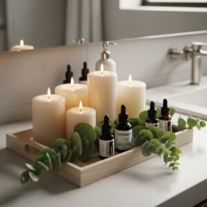 Display them on a tray or small wooden board to keep everything organized while adding a cozy, spa-like atmosphere.