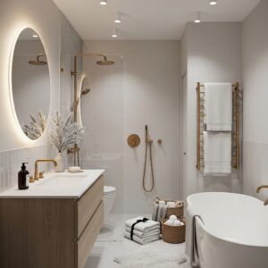 These warmer tones complement winter décor beautifully and make the bathroom feel more polished and intentional.