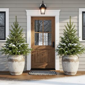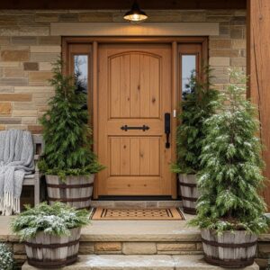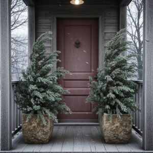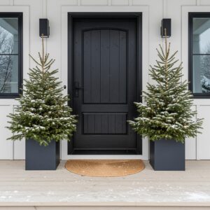 They’re especially effective for winter front porches because they naturally symbolize the season.