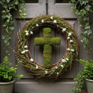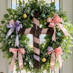 Cross Easter wreaths blend faith with creativity, making them perfect for front doors, church entrances, prayer rooms, or indoor walls.