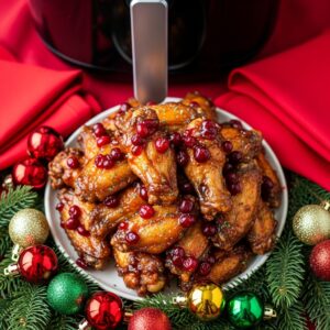 Crispy holiday-season wings tossed in a sweet, spicy cranberry glaze.