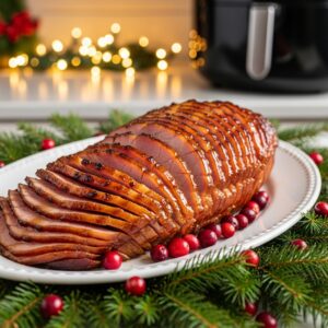 All the flavor of Christmas ham in quick caramelized slices that crisp beautifully in the air fryer.