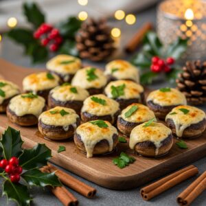 Creamy, cheesy stuffed mushrooms make an elegant Christmas appetizer ready in minutes.
