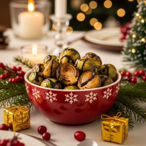 Crispy caramelized Brussels sprouts tossed in balsamic for a festive side dish.