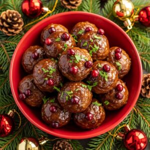 Juicy meatballs tossed in a festive sweet cranberry-barbecue glaze.