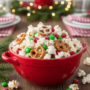 A sweet-and-salty popcorn mix with holiday colors and flavors.