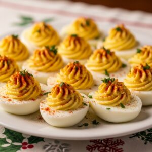 Festive deviled eggs with a sprinkle of paprika or herbs.
