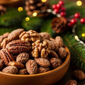 Toss nuts in butter and spices, bake at 350°F (175°C) for 10–12 minutes, cool, and serve.
