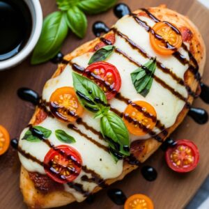 Inspired by the Italian salad — tomatoes, mozzarella, and basil meet juicy chicken breasts.