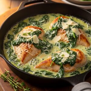 A velvety spinach cream sauce transforms plain chicken into something extraordinary.