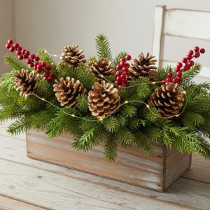 To make it more festive, spray the pinecones lightly with gold or silver paint and tuck in some fairy lights for a magical glow.