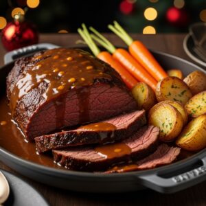 Slow-cooked beef pot roast is tender, rich, and perfect for a cozy Christmas dinner.