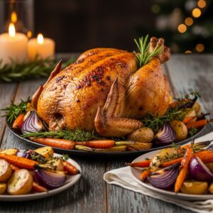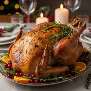 A golden, juicy roast turkey is the centerpiece of many Christmas tables. Herb butter keeps the meat flavorful and tender while creating crispy skin.