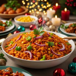 A Christmas favorite in many homes, festive jollof rice is rich, spicy, and colorful.
