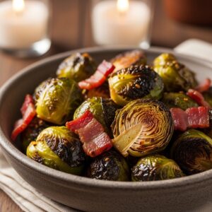 Crispy Brussels sprouts with bacon add a savory, festive touch to Christmas dinner.