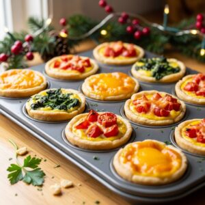 Mix eggs with vegetables, cheese, or leftover holiday ham, then pour into muffin tins and bake.