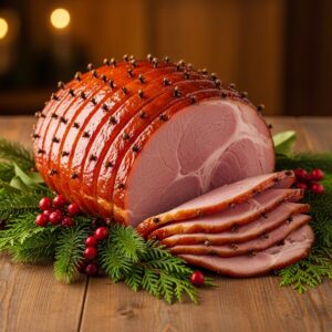 The sweet honey glaze caramelizes beautifully, giving each slice a festive flavor.