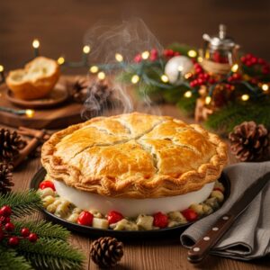 Ingredients: chicken, mixed vegetables, cream, herbs, puff pastry.