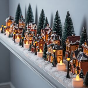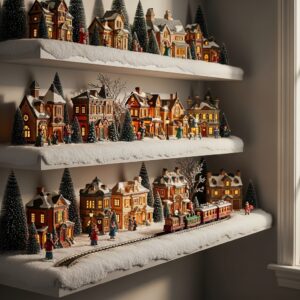 A wall-mounted Christmas village not only saves space but also becomes a stunning piece of seasonal art.