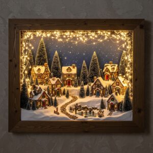 Add battery-powered LED strips around the frame, sprinkle snow, and let the lights bring your winter town to life.