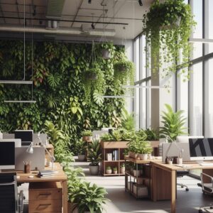 Biophilic design connects the office environment to nature, boosting creativity and productivity.