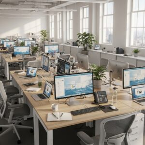 Hot-desking setups are ideal for hybrid or flexible work environments.