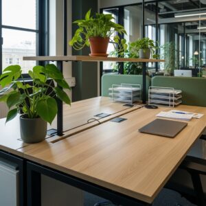 Pairing sustainable desks with natural lighting and indoor plants further enhances a green office environment and reinforces corporate values.