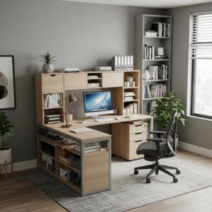 Modular workspace desks often include add-ons like privacy panels, shelves, and power modules, ensuring the office layout remains functional and future-proof.