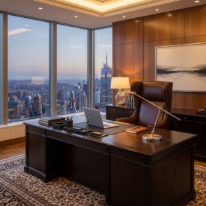 Typically larger and made from premium materials like solid wood or high-gloss finishes, these desks convey authority and professionalism.