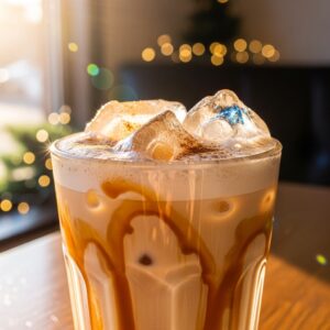 A cool and sweet variation of the caramel chai latte, perfect for iced coffee lovers during the festive season.