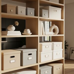 These boxes often come in matching designs, creating a cohesive and organized look on shelves or inside closets.
