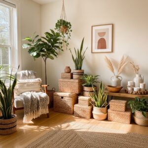 These boxes double as decor pieces, adding warmth and texture to minimalist or boho-style interiors.