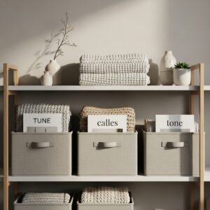 Made from materials like linen, cotton, or felt, these boxes often come with built-in handles that make pulling them out of shelves or closets effortless.