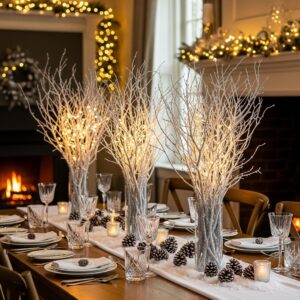 Scatter them on tables, hang them with ribbons, or use them in centerpieces for a natural winter touch.