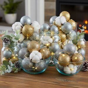 Place them in bowls or jars with small fairy lights to create a sparkling winter vibe.