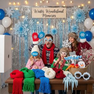 Set up a photo area with winter props like scarves, mittens, snowflakes, and faux snow.