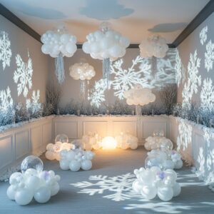 Use white balloons with iridescent or silver accents to mimic snowballs.