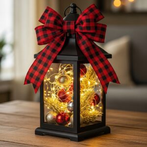 Dollar Tree lanterns can be filled with battery-operated fairy lights, ornaments, or small pinecones for a cozy holiday glow.