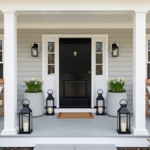 Add large outdoor lanterns to your porch steps or beside your seating area.