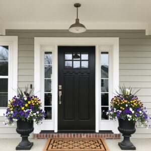 Keep your décor simple but intentional by placing matching planters, lanterns, or chairs on each side of the door.