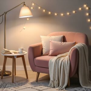 Add a floor lamp or fairy lights for warm, soft lighting.